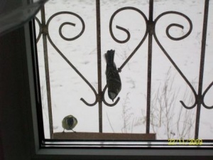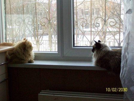 Так что птичковизор показывает очень редко. С муриями проводим воспитательную работу, что они в тепле и сытости дома сидят, а бедные птички на морозе, и то им поесть спокойно не дают.