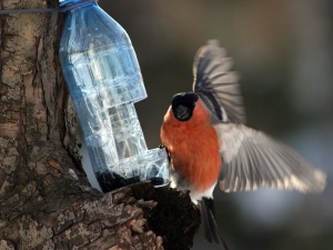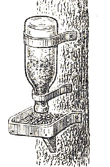 Еще везде пластиковые бутылки с прорезями крепят (эти уж точно не упрут: и рука пролезет, чтоб насыпать корма, и для мелких птичек проникнуть не проблема).