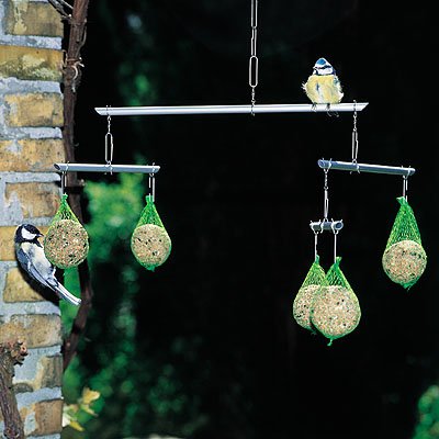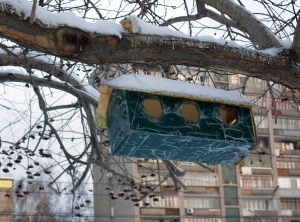 Я в феврале повесила такую кормушку (фото1), на лето снимала, сейчас можно опять использовать по назначению. Идею подсмотрела возле магазина "Надежда" на гагаринской, зимой там вот такая висела. Фото 2