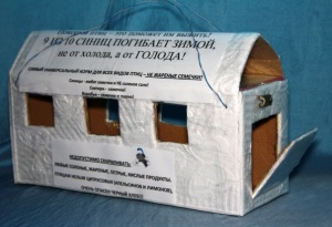 Собственно делать просто, обычная коробка с окошками, синицы побаивались сначала внутрь залазить, а воробьи на окошко садятся и трескают, но через пару дней и синицы осмелели, выберу фотки с птичками - выложу.