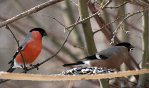 А я снегирями похвастаюсь, правда сейчас что-то не вижу их, хотя еще в начале месяца на кормушку наведывались.