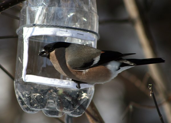 Тань, когда доедают- Бог с ним, но они же- если только могут- гоняют мелких! Я поэтому тоже использую кормушку в бутылке из-под Карачинской с окнами с 2 сторон- для мелочи пернатой...