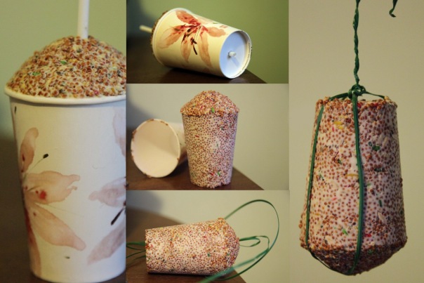 как замёрзнет - вешаете прямо за окно или на деревья! синички аж пищат от этого лакомства! и жир с зёрнами поможет им выжить!