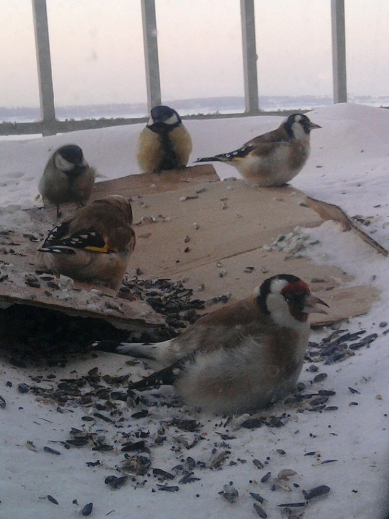 и один раз прилетал дубонос, всех птиц напугал, поел не спеша и наверно ему не очень понравилось, больше пока не наблюдали его