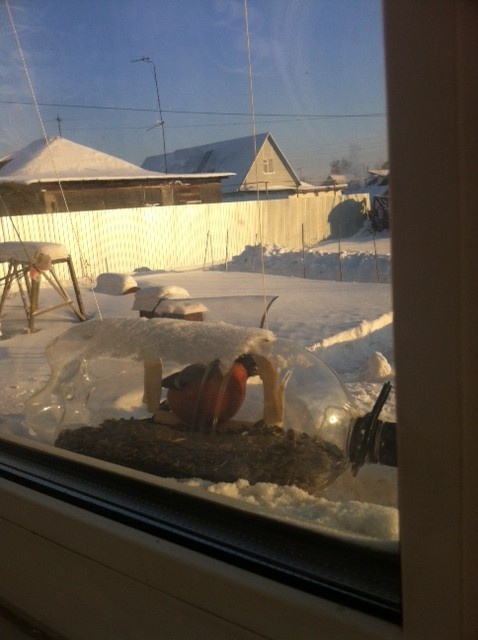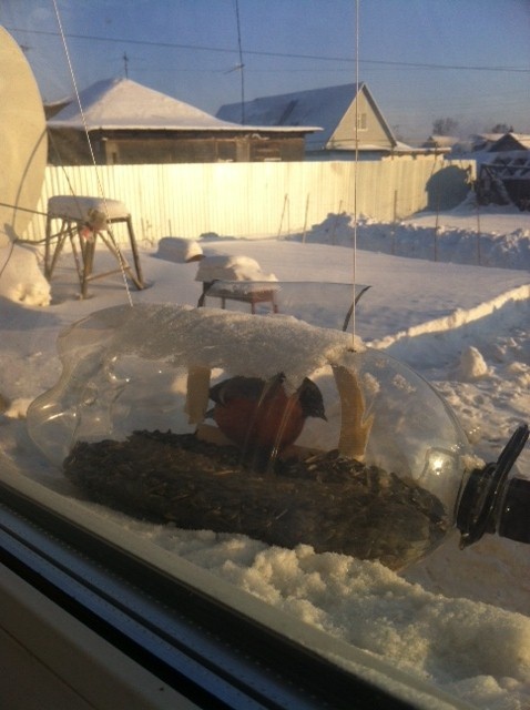 Наконец и к нам стали прилетать! В очередь становятся)) Сегодня даже драться начали)) Чувствую скоро надо будет вторую кормушку вешать))