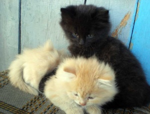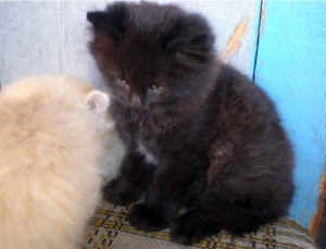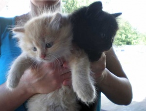 Две 1,5 мес очень пушистые котятки-девочки кремовая с голубыми глазками и лохматенькая черно-коричневая ищут добрые заботливые ручки