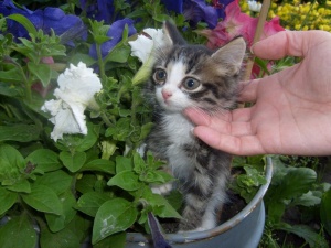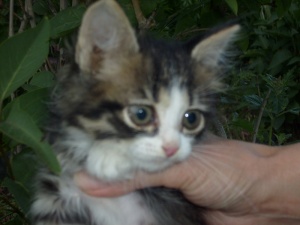 А у нас опять пополнение! Мальчишка -цыганенок, проходя мимо, сунул прямо в руки нашей Римме Ивановне маленького котенка. Котенку едва исполнилось 1 мес. Назвали его Гоша. Мы забрали его и сейчас он находиться на передержке у Светланы (Сетик -Светлячек.). Котенок оказался очень смышленым , умным и очень ласковым. Ходит строго в лоток. Кушает самостоятельно и любит когда ему уделяют внимание. Будем ему искать хозяев.