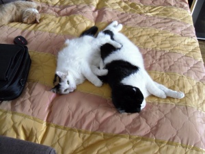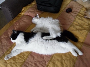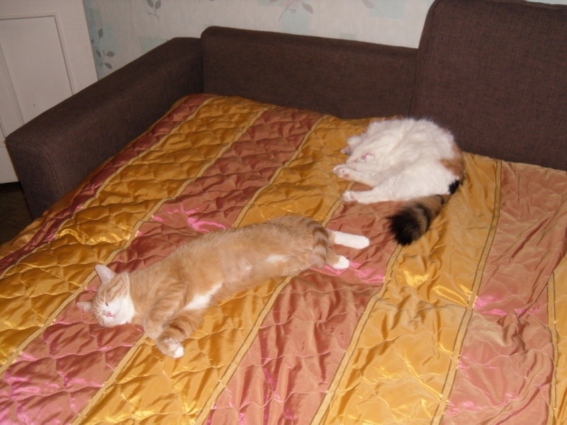 Вот так мы в основном лежим да диване, только со мной. А с рыжей Бусей мир только во время сна