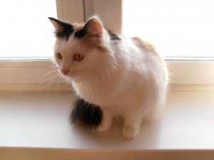 Черричка поправилась, уже упитанная кошечка, начала разговаривать. По-прежнему боится всяких посторонних шумов вроде домофона, сразу прячется.