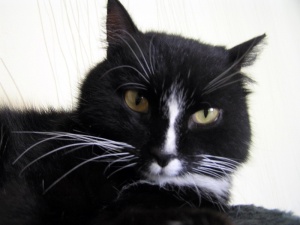 Точно. Обычно у черных котов и усы черные, у Мартина из светлых пятнышек белые усищи растут!