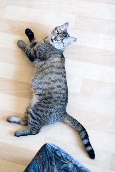 Недавно Маруся была мамой, видимо.. Потому что кормила котят, но жила при этом не в лучших условиях. Она очень жадна до еды, приходится ограничивать, иначе будет пережор. С туалетом сейчас пока непонятно, ждём-с.