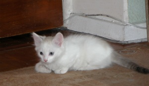 Чудный голубоглазый белый котик Пушок ищет заботливых хозяев. День рождения у него 1 марта. Приучен к лоточку, кушает все. Очень игривый. Любит гулять