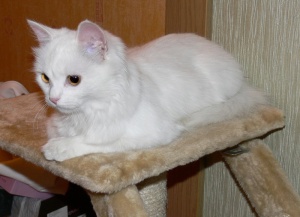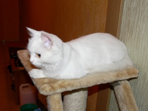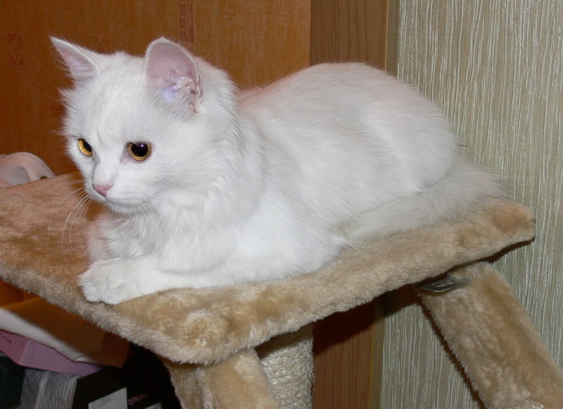 Эта киска нашла меня вечером, просто пришла к двери и орала. Показала себя только с отличной стороны, горшок знает на отлично, когтеточку применяет по назначению. Игривая, ласковая, не безобразничает.
