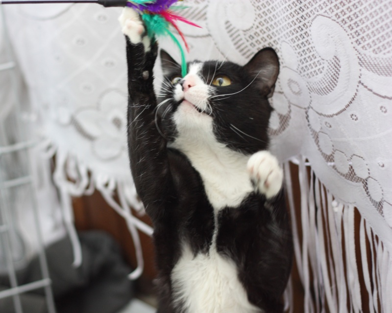 Котик совсем молодой,примерно 1 год, любит играть с мячиками и махалочками, очень ласковый, но при этом характерный кот. Одним словом, настоящая кошачья личность!