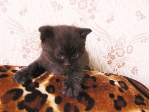 Котенок окрасом агути очень любопытный малыш по характеру, черненький поспокойнее, но тоже старается не отставать в познании окружающего мира.