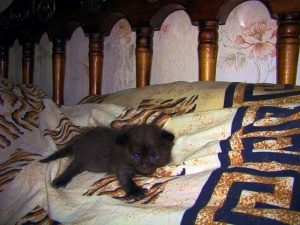 Чернышок ожидает своих маму и папу. Растет. Горшок освоил. начал кушать котячий сухой корм РК.