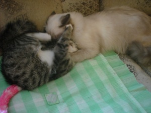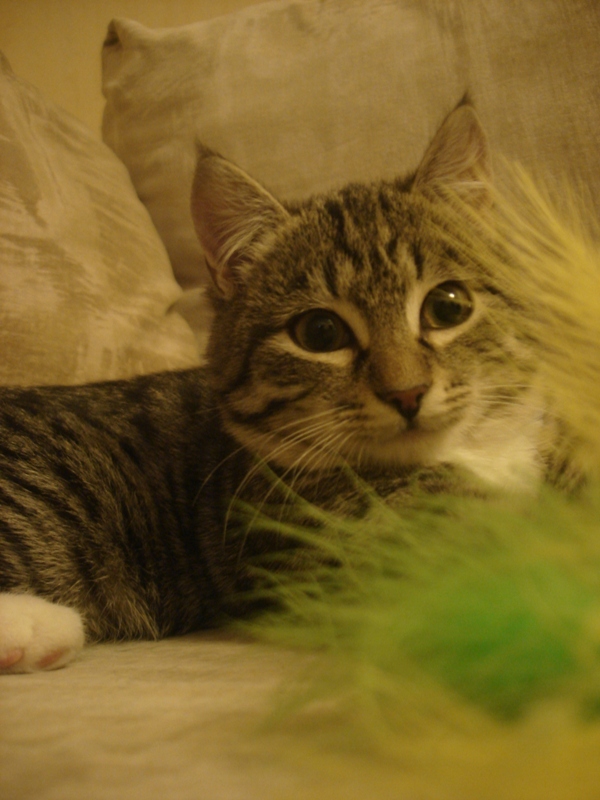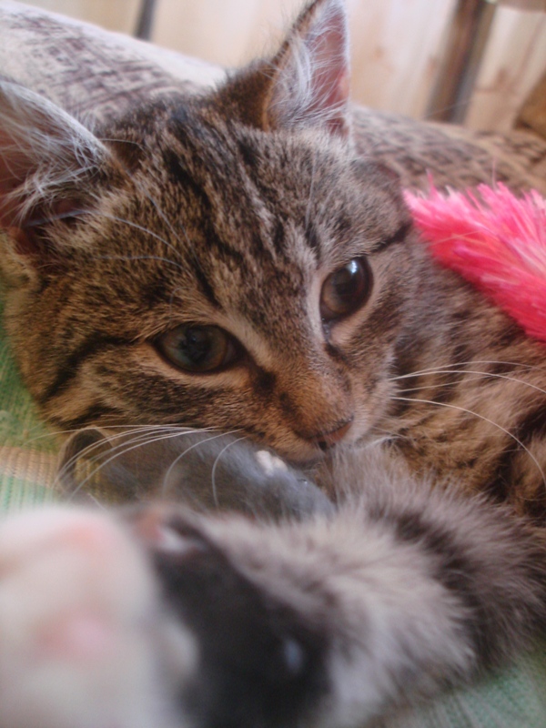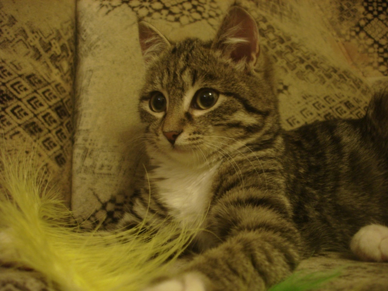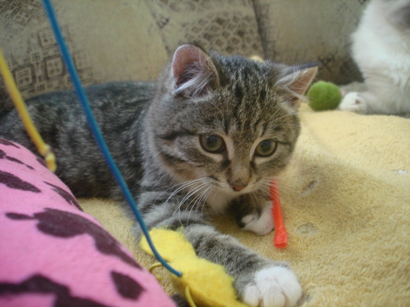 Нюшенька все еще в поиске, она растет, хорошеет, носится по комнатам с кошками, игрушками. Лопает сухой корм с огромным удовольствием и уже пытается выпрашивать у нас обычную еду. очень озорная и заводная девочка-припевочка
