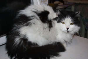 Этого кота "хозяева" продержали 2 месяца в металлическом гараже, в темноте. Он стал им мешать. Гамлет (так его зовут) кастрирован, приучен к лотку. Он очень ласковый. Он любит сидеть на коленях (видимо скучал по ласкам и общению