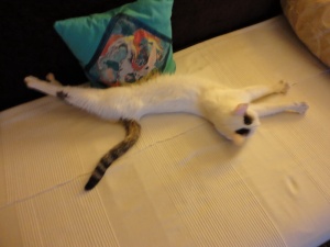 Она приходит нежиться и мурчать свою песню перед сном вечером и утром, но не для того чтобы разбудить, а чтоб её по нежили, погладили брюшко и просто рядышком посопеть до будильника. При виде того как она нежится на кресле и какие при этом принимает позы, можно только умиляться. Она тихонечко муркает здороваясь с тобой, когда долго отсутствуешь и приходишь домой.