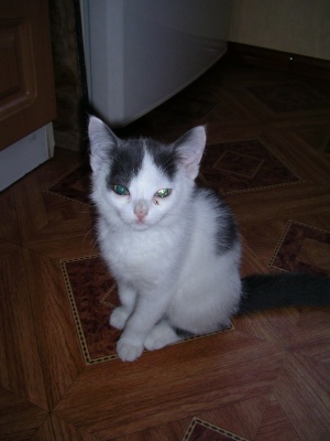 Ева - Белая с пятнышками девочка, очень ласковая и любопытная.