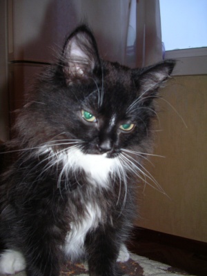Бимка - черный с белыми пятнышками пушистый мальчик, игривый, шустрый