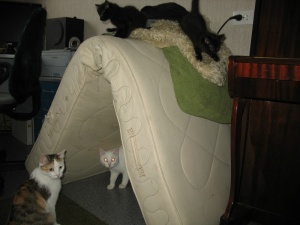 Часть третья. За неделю котята окрепли, научились кошачьим премудростям . Им около двух месяцев. Аппетит отличный. Котятам не хватает самого главного в их жизни – ХОЗЯИНА! Человека кторый будет их любить и заботиться о них, и никогда не оставит наедине с бедой. А они в долгу не останутся. Проверено веками.