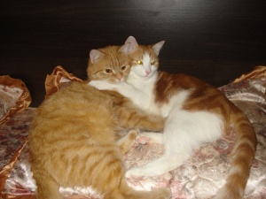 Кот дружит с животными на передержке, очень дружит с хозяйским рыжим котом, даже не представляю как их разлучать... Поэтому хочется пристроить Степашку в семью, где еще будет кот, чтобы было с кем играть, обниматься и так далее :))