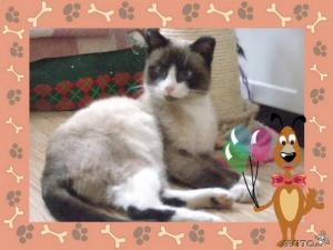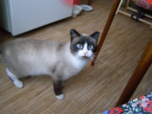 Котофей из подвала. Подросток месяцев 6-8. Очень ласковый, голубоглазый. Тайская маска не полная, в середине носа расходится "на пробор". Очень изящный. Шерсть необычная - как у светло-кофейной норочки. Хозяева нужны ответсвенные, чтобы ещё не оказаться на улице.