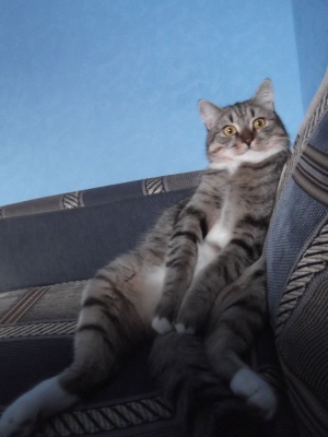 уже чувствует себя настоящей хозяйкой. Бедный наш кот, и мур и мяу, и всякими трелями (уже правда кастрированный в 8 месяцев). Не отходит от нее и глаз не сводит. Кстати, по необычному стечению обстоятельств мы нашего котейку приютили ровно год назад 5 января 2011 года. Также был подброшен в подъезд (где то в Мочище что ли), кисок трое тогда было. Наш красавец:
