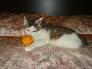 Мальчишка совсем освоился, стал настоящим ребенком, носится как угорелый, скочит, прыгает, играет с мячиками и все еще ждет, очень, очень, своего хозяина