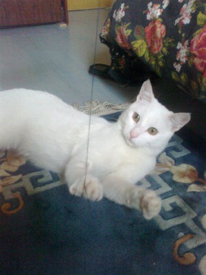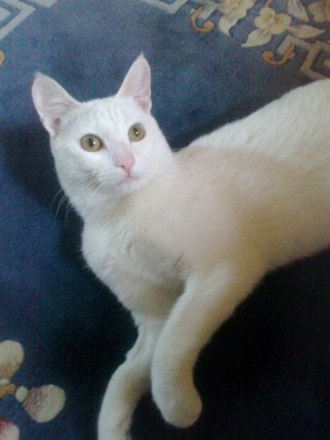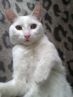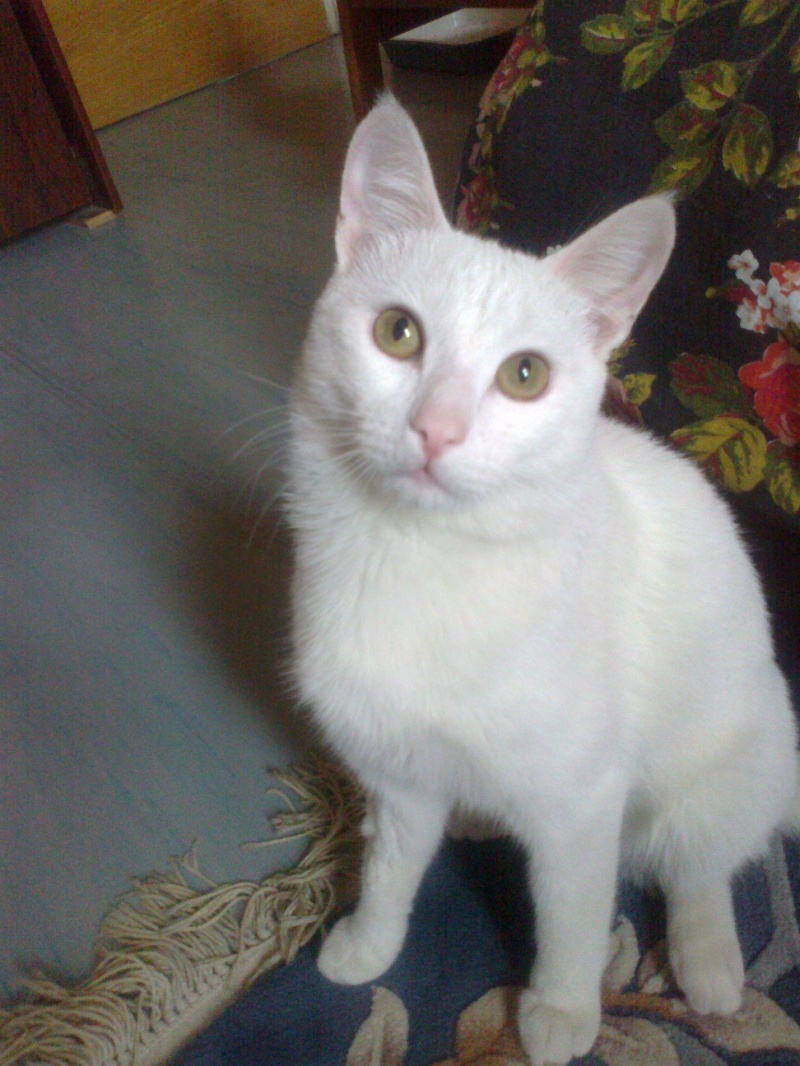 Белоснежный котик с нежным голоском примерно 1 года возраста, ищет только добрые руки.