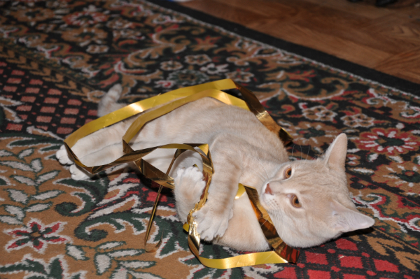 Мой кот и раньше проявлял интерес к гостям, но тут просто ни на шаг не отходил. К вечеру дети уже почти не шипели друг на друга, но абориген не переставал таращиться на пришельца. С утра котейки уже вовсю дружились-носились-бесились по комнате, снося, буквально, всё на своем пути. А вот с собакой у котика отношения не сложились, поэтому такое соседство в будущем доме нам совсем не подходит.