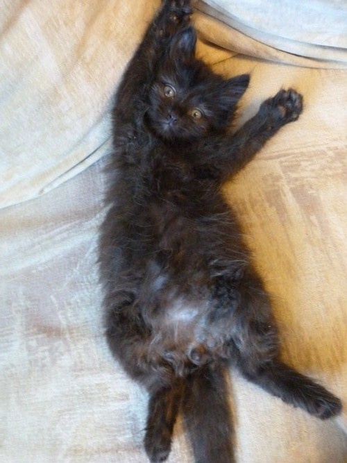 Фунтяшких вообще просто чудо, он просто суперр. Любит лежать на спине, чтоб ему гладили головку, а он тем временем задирает лапки к верху. Очень и очень ласковый и спокойный малыш