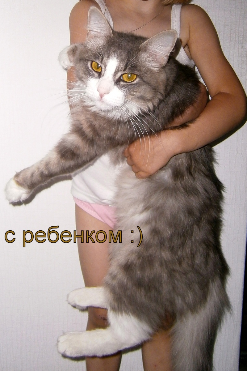 К детям очень терпим, к дочке приходил дружок ее возраста, они вместе его таскали, кот вообще не возмущался, потом уже, когда расшумелись - ушел под стол.