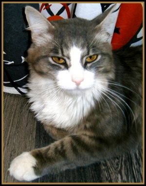 Очень ласковый, приходит под бок и как-то уютно устраивается, мягкий и пушистый, усы шикарнейшие (зимой наверно будет ого-го) и при этом практически не линяет (честное слово, нас тоже это удивляет).