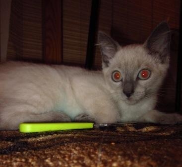 Отдается только под стерилизацию. Причина - очень слабые брюшные мышцы. Была проверена операция по ушиваю пупочной грыжи. На физическом состоянии это никак не сказывается. Бегает, играет как и все)