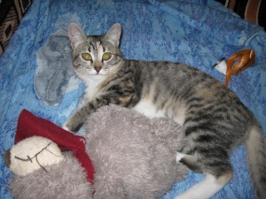 Марыська уже не маленький котёнок, но ещё и не взрослая кошка. Любители котят нас уже не возьмут, а те, кто ищет взрослое животное, ещё не возьмут, ну и что же нам делать