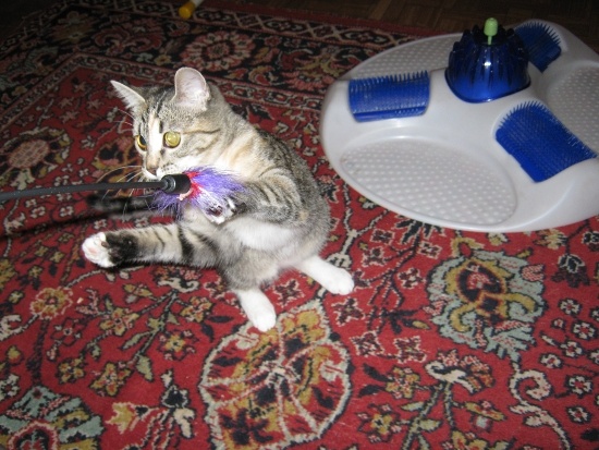 Если у Вас есть ленивый, толстый котик/кошка, заведите ему эту бойкую подружку, и Ваш котик всегда будет в отличной форме, моих двух лежебоков Марыська, за несколько дней, когда я её выпустила с карантина, уже порядком загоняла