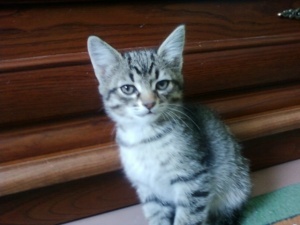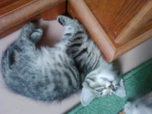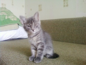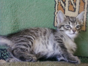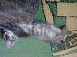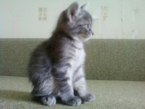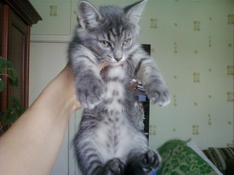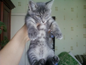 Серая в полоску. Самая маленькая, но хулиганит так же как и все остальные. Тоже любит кувыркаться.