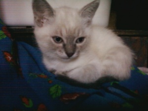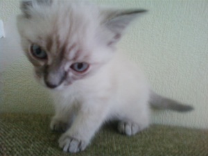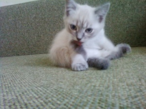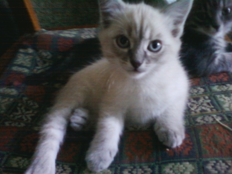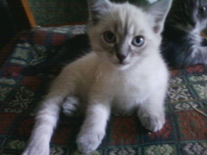 Родилась совершенно беленькой, но на настоящий момент уже потемнели ушки, лапки, носик и хвостик