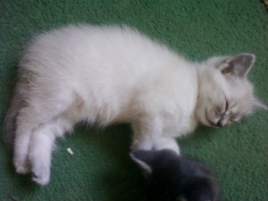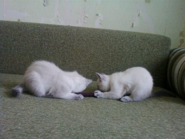 Котята родились 28.10.2012. Но несмотря на столь юный возраст освоили горшок и уже самостоятельно кушают.
