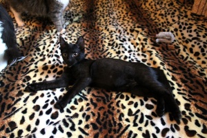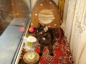 Напоследок фото из нового дома, парнишка, теперь он Барсик, очень любит сидеть на окне и ему там оборудовали уголок.