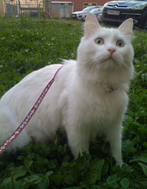 Ищет заботливых, понимающих хозяев красивый пушистый кот по кличке Белый.