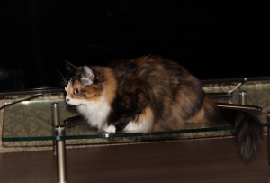 Как только раздаётся звонок в дверь, где бы ни была Миська, она тут же мчится в прихожую, садится на тумбу перед дверью, принимает красивую позу и с надеждой смотрит на дверь.