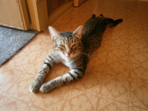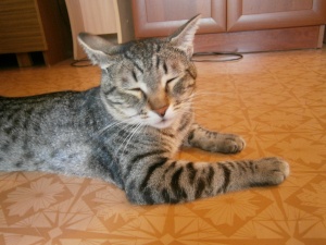 Юный Тигруша продолжает ждать своих хозяев. Уже освоился, менее пуглив. Любит играть и смотреть в окно.Обратите на нас внимание.