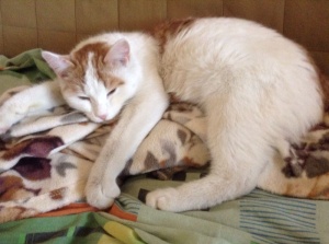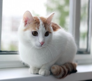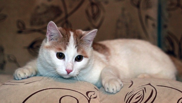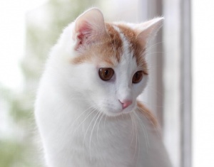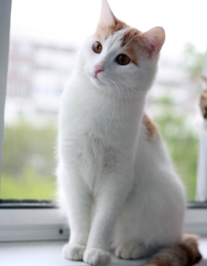 Замечательный котик Луис ищет хороших хозяев. У Луиса очень интересный окрас - сам белоснежный, рыжие пятнышки и хвост.