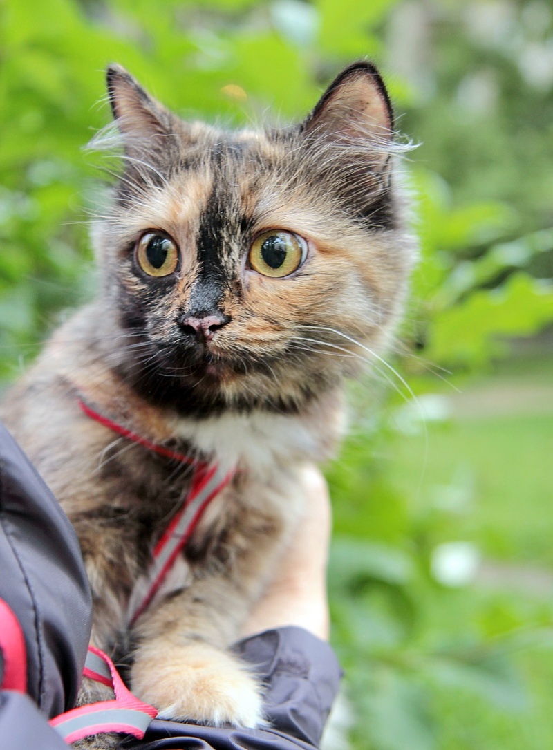 Когда я ее увидела, мелкую (я подумала что ей от силы месяцев 10) , потерянную, напуганную и тянущеюся к людям, она бежала за людьми и громко орала. Пришлось забрать ее с улицы.