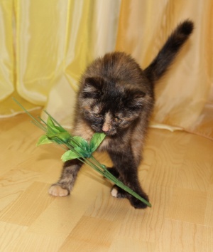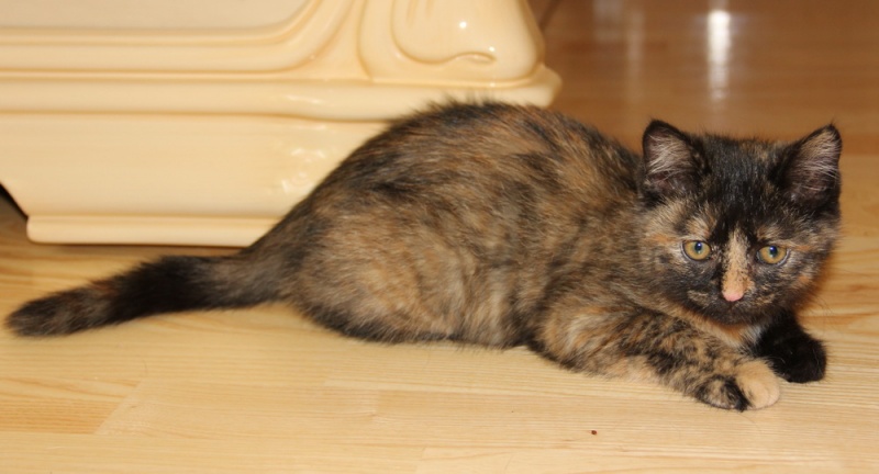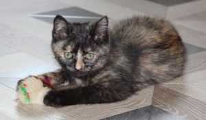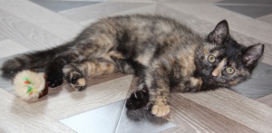 Отважная, весёлая, воспитанная девочка 2,5 месяцев ищет дом и любящих хозяев. Лоточек распознала сразу, когтеточку освоила на второй день, кушает сухой корм. Чистенькая, здоровенькая. Коготки и зубки в ход не пускает.