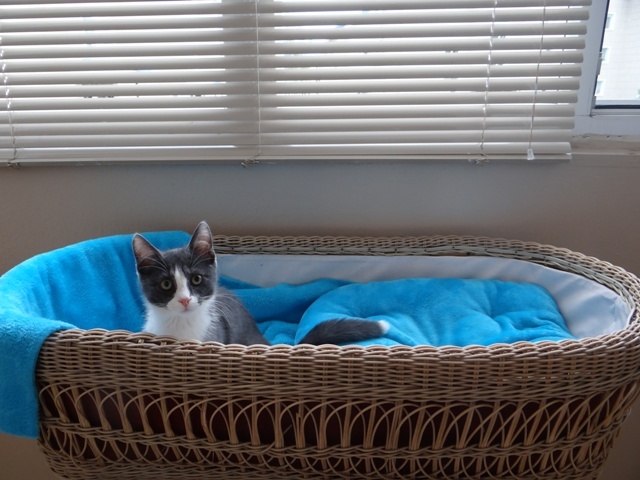 Ест сухой корм для котят, пользуется комкующимся наполнителем. Обработан от паразитов.