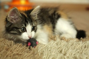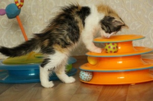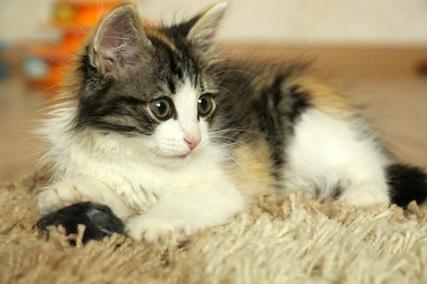 Для маленькой трехцветной букашечки Шерри ищем самых надежных хозяев! Малышку нашли на улице, помыли, обработали от паразитов. Шерри размером с ладошку, очень маленькая и забавная. Несмотря на свой крошечный возраст (приблизительно 1.5 мес) и размер, Шерри очень умненькая, сразу пошла в лоточек, исследовала территорию, познакомилась с другими кошками. Любит играть игрушками, тут просто глаза разбежались от их количества, хочется порой играть сразу во всё ). Забавный, милый, красивый ребенок, о чем она знает и тут же демонстрирует нам свой красивый пушистый хвостик)))